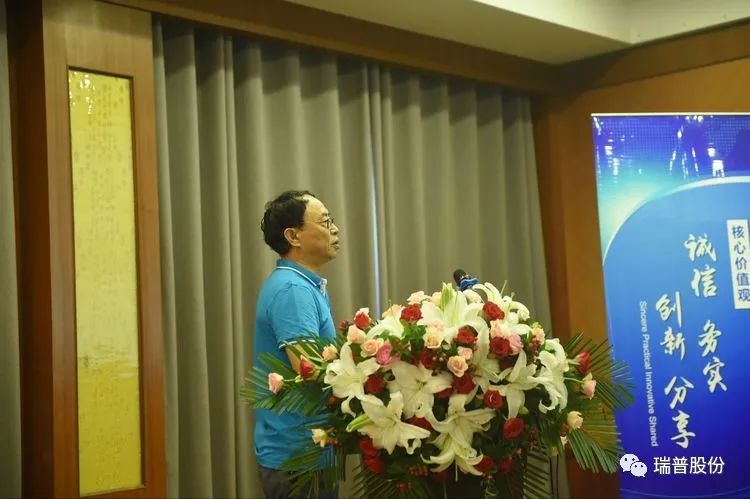 瑞普公司董事長(zhǎng)程飛先生對(duì)行業(yè)環(huán)境的發(fā)展做了分析,對(duì)各職能部門(mén)、分公司上半年的業(yè)績(jī)予以了肯定,并為大家勾勒了瑞普夢(mèng):未來(lái)十年,打造瑞普的家園,營(yíng)造具有瑞普特色文化和氛圍的高科技企業(yè),充分尊重知識(shí)人才,高度體現(xiàn)人文關(guān)懷,員工幸福、股東滿意的精神家園!