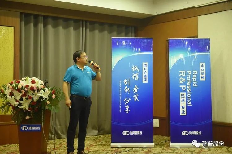 瑞普公司總裁黃立志先生在會(huì)上將瑞普公司始終堅(jiān)持的企業(yè)文化理念做了進(jìn)一步闡述,對(duì)全體管理人員的敬業(yè)付出表示了感謝,他說(shuō),瑞普公司要堅(jiān)持以“成為全球橡塑零部件核心供應(yīng)商”為愿景,以“德行合一、質(zhì)造中國(guó)民族品牌”為使命,打造一支具有“迅速Rapid、專(zhuān)業(yè)Professional”的RP精神的高效過(guò)硬的瑞普?qǐng)F(tuán)隊(duì)。未來(lái),我們要擰成一股繩,不要驕傲、不要?dú)怵H;不忘使命,牢記愿景。迅速專(zhuān)業(yè),開(kāi)拓創(chuàng)新!